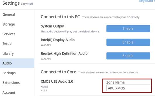 Select an Audio Zone을 클릭하여 위에서 활성화한 DAC를 선택합니다.
